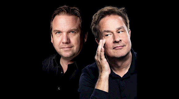 Die Kabarettisten Lars Reichow und Matthias Brodowy auf einer Bühne,